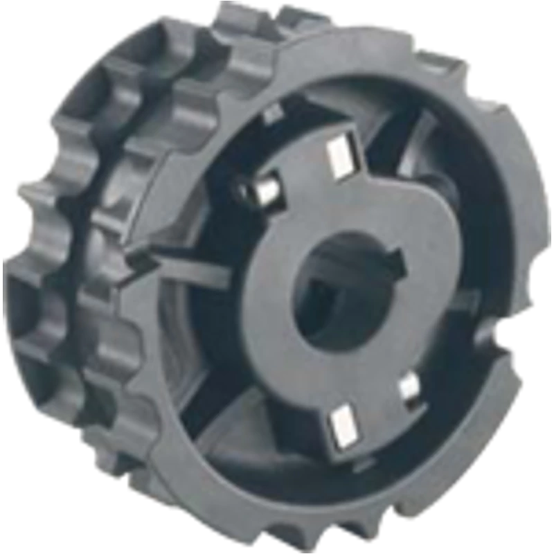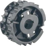 Tömör vagy kétrészes kivitelű talpaslánc lánckerék műanyagból. Alkalmas egyenes pályájú talpasláncok hajtására.