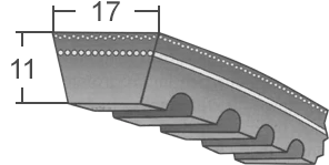 Prémium minőségű BX-es profillal rendelkező fogazott ékszíj. 17 mm x 11 mm-es profil keresztmetszettel.