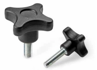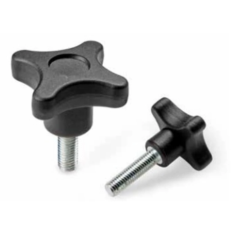Négyágú csillag alakú erősített műanyag marokcsavar. A menetes szár anyaga horganyzott acél. Többféle menethosszal és átmérővel elérhető. Sima felületű fekete, poliamid fej, a csúszás csökkentése érdekében. Kialakításának köszönhetően könnyű és kényelmes fogású marokcsavar.