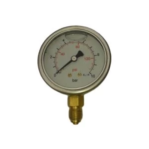 Glicerines töltésű MX típusú manométer, mely alsó 1/4 collos csatlakozású. A csatlakozó réz anyagból készült. Maga a manométer fémből készült, kiváló minőséget képvisel. Ez a típusú nyomásmérőt 63 mm-es átmérőben kínáljuk.