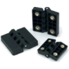 Erősített műanyag zsanér többféle réz anyával szerelve. A zsanér csapja horganyzott acél. Fekete színű és sima felületű. Többféle befoglaló mérettel és furattávolsággal kínáljuk.